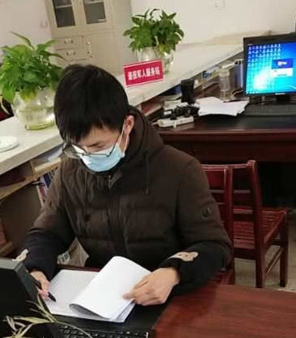 他于2017年年底通过考试上任江夏区乌龙泉街新建村“两委”后备干部,他主要协助新建村村支两委从事基层党建、精准扶贫等方面的工作。虽然每天要做的事情很多,但是他总认为这样可以让他过得很充实,还能锻炼能力,增长才干,增加经验。在工作中,他经常到贫困户家里走访慰问,了解需求,帮助贫困户,真正做到了接近群众、走进群众,听到群众的呼声,了解到群众内心的所需所想。