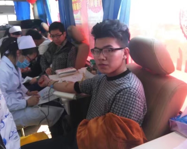 张炫(前一)自2015年工作后便开始献血