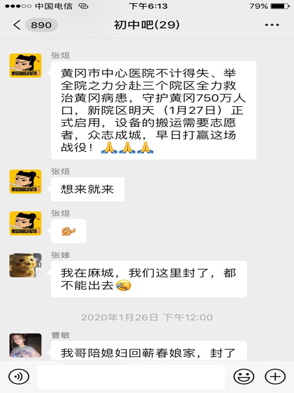 张炫在初中群里号召同学们来帮忙