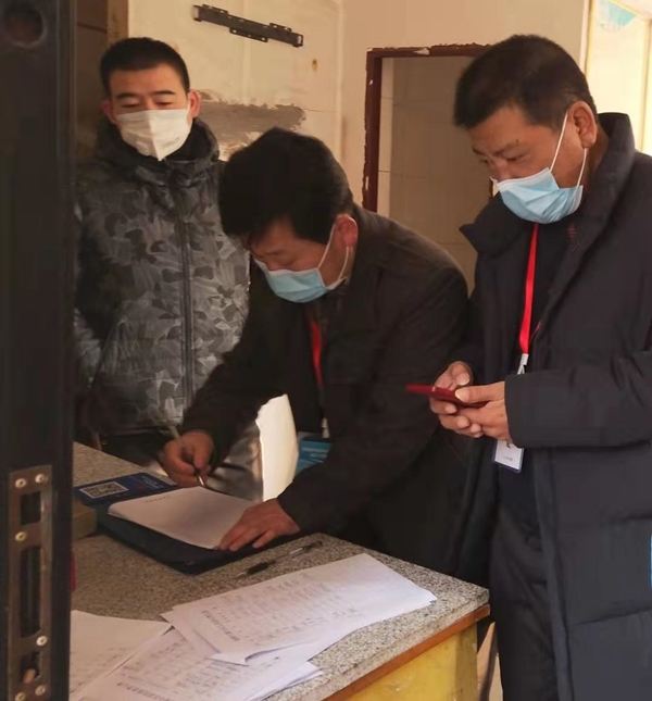 张军浩(右一)与工作人员在社区排查