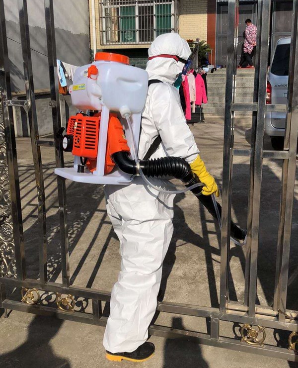 2月14日,张炫成为了市疾控中心消杀组的一员。当天,他穿着密不透风的防护服,戴着口罩、面罩、橡胶手套,背着沉重的药箱,同队员们一起对22个疫点(确诊患者家庭)进行消毒,在惠民医院对感染病房、走廊、楼梯间进行消毒。