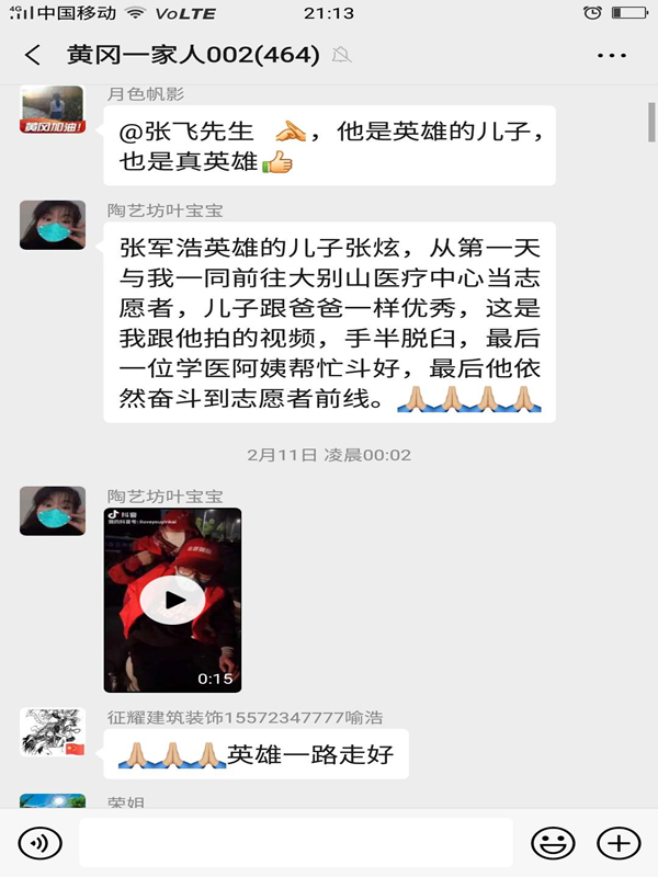 在“黄冈一家人002”志愿者群,人们谈起张炫父子