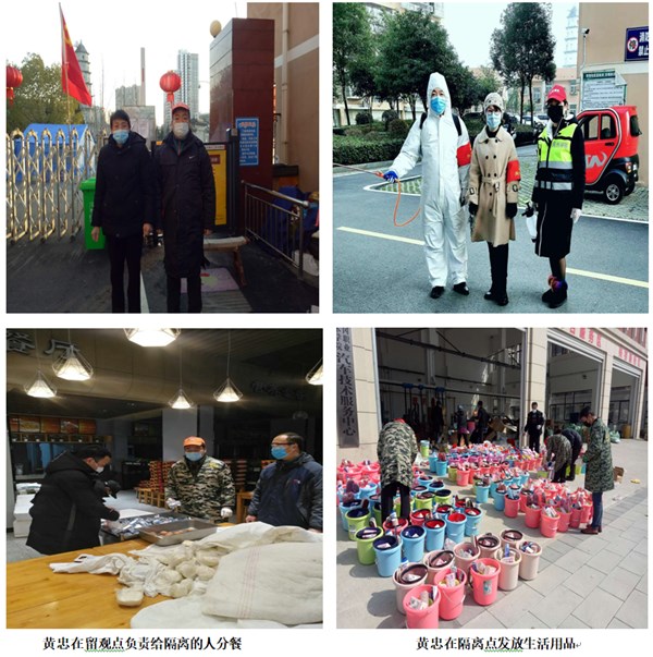 黄冈职院的黄忠老师作为小区综合党支部的支部委员,受党支部书记林胜的委托,负责小区疫情防控的宣传报道工作、小区临时管理制度的起草工作,还负责整个小区120多名党员同志的值班安排工作,并带头参与消毒、值守、包保和物资分发等工作。他工作扎实、敢于担当、顾全大局、不怕苦累,充分发挥了“领头羊”和战斗堡垒的作用。他在小区的工作表现得到了综合党支部、广大党员同志和小区居民的高度好评。