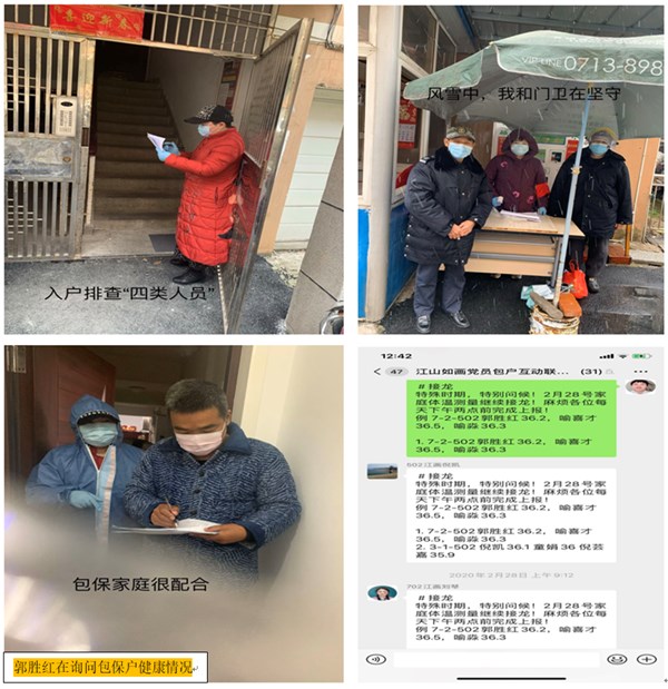 生命重于泰山、疫情就是命令、防控就是责任。自新型冠状病毒肺炎疫情发生以后,在长江花园小区综合党支部林胜书记和黄忠委员的带领下,住在小区的黄冈职院的共产党员和志愿者们都恪尽职守、无私奉献,持续战斗在疫情防控第一线。他们不怕吃苦、乐于奉献,以实际行动为小区居民筑起了一道疫情防控的防护墙。