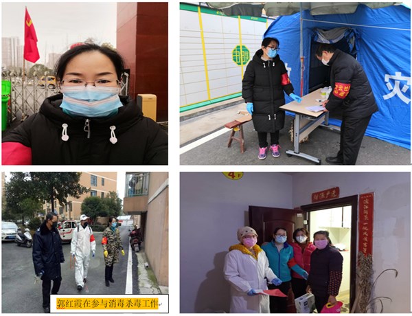 对待生活和工作,郭胜红老师一直保持积极主动的态度。学校开展“不忘初心,牢记使命”主题教育活动时,她就主动到长江花园综合党支部报到。2月7日她被分配到青云社区江山如画小区包保24户家庭,50多天以来,除每天雷打不动的体温日报外,她还负责上传下达、入户排查、心理疏导等工作,深受包保家庭的信任和好评。2月9日至2月11日,连续三天她忍受着肩周炎、颈椎病的剧痛,积极参与了学校腾退学生宿舍的紧急活动。抗疫期间她还多次与小区支部书记林胜同志汇报交流思想,分析商讨部分居民及党员同志的情绪波动。她用实际行动践行初心和使命,用微笑和热情来感染、感化小区居民,用正能量维系和保障小区的安全和稳定。