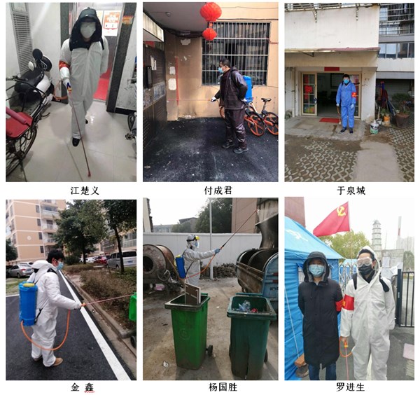 长江花园小区有14栋楼房,一共30多个单元。两个多月来,志愿者们轮流值班,风雨无阻,从未间断。小区里面的道路、楼梯、楼道、电梯间乃至每一个角落都留下了“大白”的身影。人们每天都能看到电梯间消毒过的痕迹,能闻到消毒水的味道。凡是“大白”经过的地方,大家就感到安心、踏实。在这群“大白”当中,有一半的志愿者来自我们黄冈职院。江楚义老师是一位有着20多年党龄的老党员,在这次抗疫中,他同样勇挑重担,积极参加门口值班值守、党员包保和消毒杀毒工作。在防护服不够的情况下,付成君老师没穿防护服就去工作了,这是多么可贵的大无畏精神呀!于泉城、罗进生、金鑫、杨国胜、刘天夫等老师都积极参加了小区消毒工作。