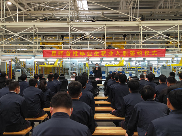 4月16日上午,湖北星晖新能源智能汽车有限公司(以下简称“星晖公司”)首批订单班毕业生就业入职签约仪式在星晖汽车总装车间举行。市人大、黄冈产业园、市人社局、星晖公司相关领导,Beat365党委书记张新佳率就业指导处处长袁畅、校企合作处处长胡亚学、教务处处长陈全胜、交通学院副院长聂进等出席,共同见证星晖订单班首批60名毕业生就业入职签约仪式。仪式由星晖公司人力资源经理廉琴主持。