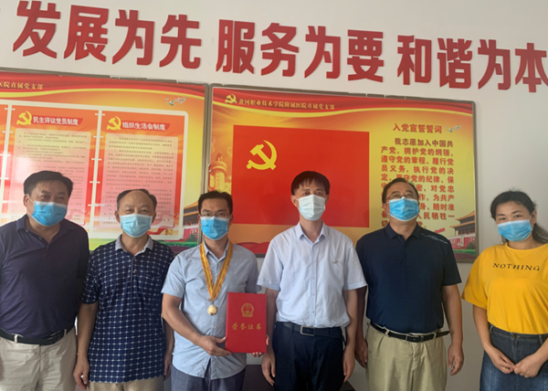 7月3日下午,在附属医院五楼会议室,学校党委委员、工会主席、宣传部部长郑柏松为黄冈市“五一劳动奖章”获得者肖利春颁发了荣誉证书和奖章。医院直属党支部书记程朝晖、院长沈爱平,校工会(离退休服务处)罗登宏处长、陈桃荣副科长参加了颁奖仪式。