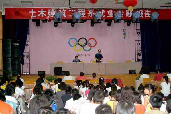 2008年5月27日晚7点,应土木建筑工程系的邀请,学院党委副书记覃守云研究员在大学生活动中心给我系全体06级学生作了精彩的就业报告。刘晓敏主任主持了报告,参加此次报告的还有系党总支副书记黄正东以及全体辅导员。