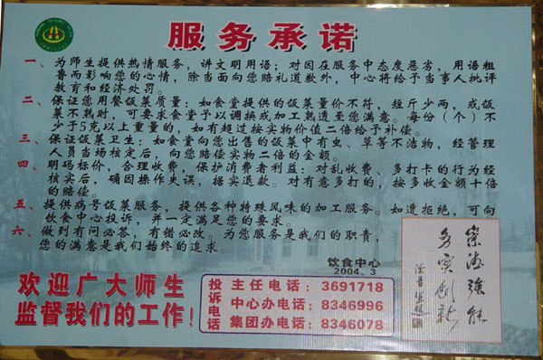 标准化食堂的达标,是上级领导对我院“标准化食堂”创建工作的全面肯定。标准化食堂的达标,对我们既是一种荣誉和鼓励,又是一种要求和鞭策。我们一定会以此为契机,决心在省教委及其它有关部门的领导支持下,借助高校社会化改革的东风,依托学院全面发展的契机,进一步强化“让师生满意是我们永恒的追求”服务理念;弘扬“忠于职守、敬业奉献、务实创新、争创一流”的膳食精神;遵循“诚信、热情、规范、快捷”的服务准则,进一步贯彻落实标准化食堂的要求。为发展高等职业技术教育事业再立新功,为培养实用型技术型建设人才再作贡献。