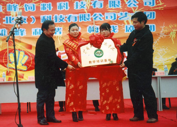 2004年12日21日,在湖北新雄峰饲料科技有限公司举行热烈隆重的生物工程系校外教学实习基地挂牌仪式,周德金院长亲临现场并揭牌,这标志着生物工程系校外教学实习基地建设上了一个新台阶。参加挂牌仪式的领导还有生物工程系党总支书记王梓林、畜牧兽医教研室主任范先超和湖北新雄峰饲料科技有限公司总经理韦汉林等领导。