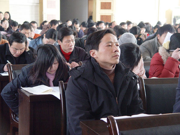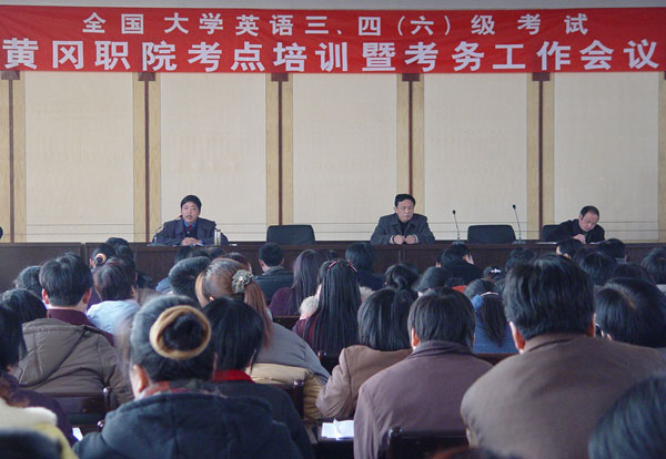 学院教务处副处长、考务组成员金为民同志首先传达了省考试院的会议精神,并组织学习了《湖北省2005年元月全国大学英语四(六)级考试考务细则》。着重指出:本次考试要求高,结合我院考点考生人数多、考场分散等特点,要求全体工作人员一定要提高认识,以高度的责任心对待本次考务工作,并对考前、考中、考后监考老师应注意的问题及对待舞弊考生的管理问题作了详细的说明。