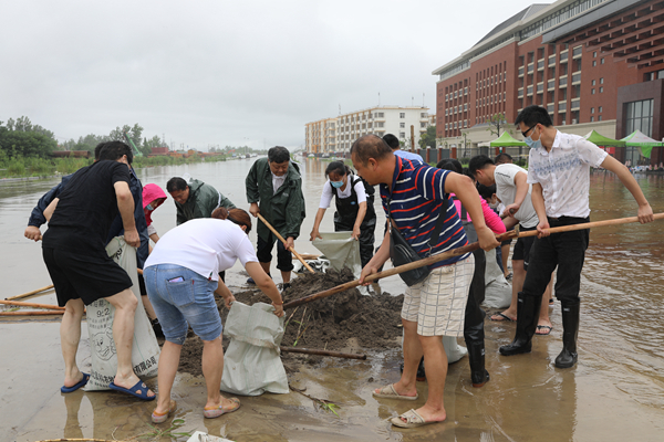 由于连降大雨,7月8日,学校部分区域进水。广大教职工堆沙包,排积水,取得了学校防汛保卫战的胜利!