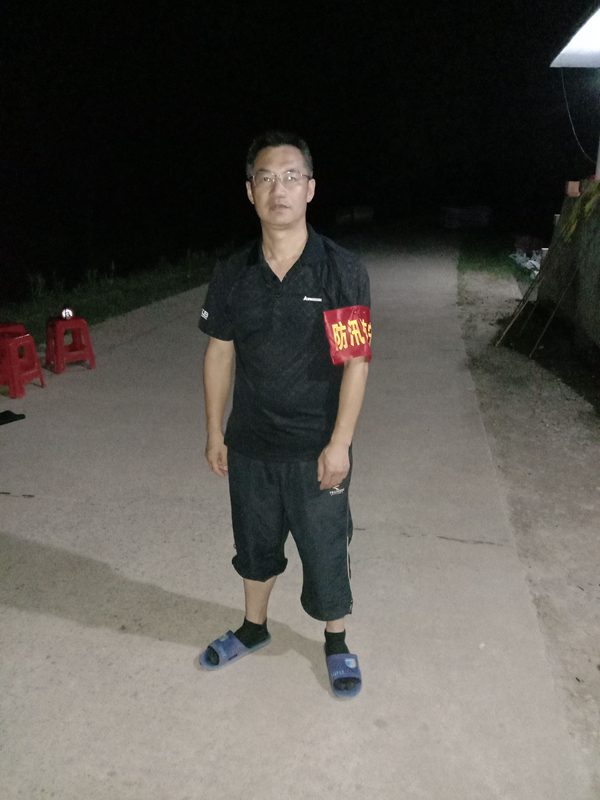 黄国祥,交通学院党总支书记。他刚从招生前线回来,又火速投入了抗洪战斗。8月2日,他在江堤上默默度过了54岁生日,当晚他只让队友岳文志帮他拍了一张值守江堤的照片。巧的是,2016年,他在学校抗洪前线迈入了50岁。在抗洪一线过了两次生日,他觉得非常荣幸与自豪。他还参加过1998年抗洪,战斗经验丰富。他总是提醒队员:“要注意安全,尤其是雨天和夜间”“高温期间要注意防暑,天气炎热也要吃饭来补充体能”“要时刻关注水位的变化”……他说:“我们的队员认真踏实,团结协作,无条件服从指挥,高质量完成任务,展现了黄职人的责任与担当!”