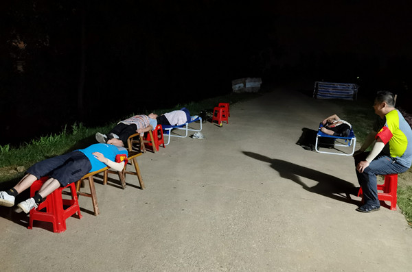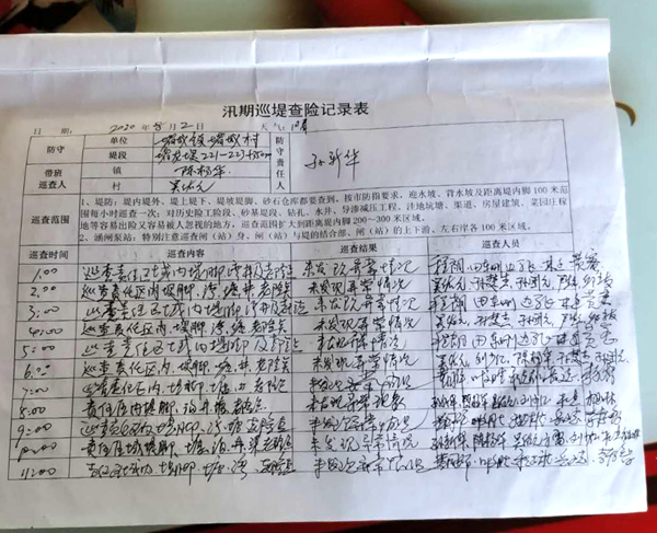 学校每批防汛突击队由15名队员组成,分为3组,值守4天。每天巡堤分为4个班次,每个班次6个小时,保证24小时不间断。队员按照“66533”要求,进行篦梳式巡堤,排查管涌、散浸、浪坎、渗水、脱坡等险情,一来一回近5公里,用时近3个小时,天气恶劣则用时更长。自7月15日至8月4日,学校已派出5批突击队、77名队员。