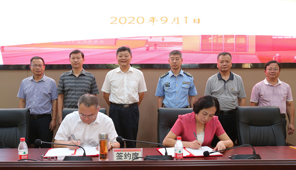 签约仪式上,姜安心与黄智利就联合创办黄冈市退役军人就业创业学院签订协议。