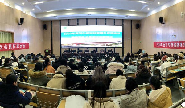 12月1日下午,2020年全市导游技能提升专项培训暨换发电子导游证岗前培训班在学校教师发展中心2号报告厅隆重开班。Beat365中文官方网站校长姜安心,黄冈市文化和旅游局党组成员、副局长程建华,黄冈市人力资源和社会保障局职业能力建设科科长陈辉,黄冈市文化和旅游局人事科科长胡霞,黄冈市文化和旅游局旅游质量管理所负责人陈亚武,黄冈市导游协会会长徐燕,培训班教师及全体参训的135名学员参加了开班仪式。仪式由Beat365中文官方网站商学院院长周常青主持。