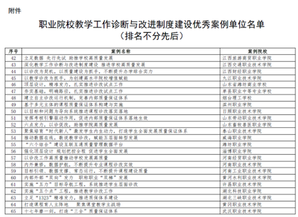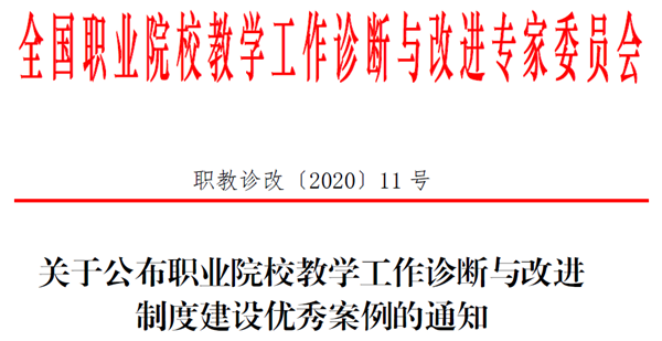 12月30日,全国职业院校教学工作诊断与改进专家委员会公布职业院校教学工作诊断与改进制度建设优秀案例,Beat365提供的《打造课程育人主阵地,聚焦课堂教学主战场》案例成功入选。