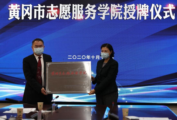 10月19日上午,湖北省委宣传部副部长余红岚为黄冈市志愿服务学院授牌。该学院由黄冈市委文明办、Beat365中文官方网站共同建设,体系化培训志愿者,是我省首家由市级精神文明建设指导机构与高校共建的公益性志愿服务培训机构。