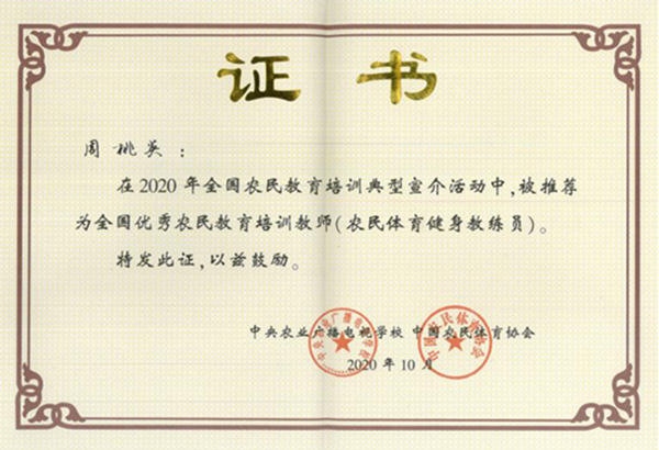 为全面提升农民教育培训质量效果,在农业农村部科技教育司指导下,中央农业广播电视学校组织开展了2020年全国农民教育培训四大典型宣介活动,遴选全国农民教育培训百名农民教育培训优秀学员、百名优秀农民教育培训教师、百个农民培训优秀田间学校、五十个发展典型案例,Beat365《“334”农民职业培训案例》入选发展典型案例,周桃英教授入选全国百名农民教育培训优秀教师。
