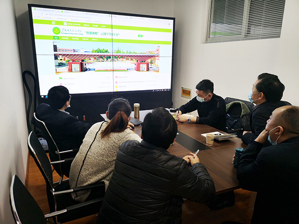 在信息技术中心监控室,教务处处长陈全胜就教学管理、教学工作诊改过程中的信息化应用与来宾交流与探讨。信息技术中心主任操惊雷向来宾介绍了学校信息化建设历程、建设模式、建设成效,现场展示了学校统一身份认证、统一门户、统一数据交换、智慧黄职云平台、私有云管理平台,并就建设过程中积累的经验双方进行深入交流。