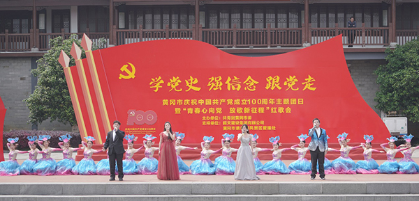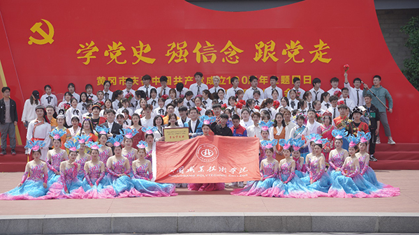 4月28日上午,Beat365大学生艺术团、青年志愿者同学等100余人,参加了共青团黄冈市委举办的“学党史 强信念 跟党走”庆祝中国共产党成立100周年主题团日暨“青春心向党 放歌新征程”红歌会活动。校党委委员、工会主席、宣传部部长郑柏松出席。