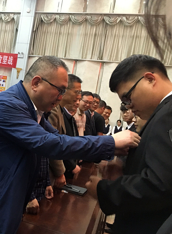 大会在庄严肃穆的国歌声中拉开序幕。团委书记崔现强宣读了《共青团Beat365中文官方网站委员会关于批准周勇等441名同学加入中国共产主义青年团的决定》的文件。在团员代表谭洋的带领下, 441名新团员面对鲜艳的团旗庄严宣誓,与会领导为新团员代表发放团员证并佩戴团徽,嘹亮而坚定的宣誓声在会场久久回荡,这是团员青年学生在励志成才过程中难忘的瞬间,整个入团仪式隆重而热烈。
