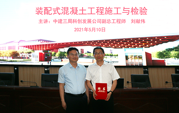 为推进高水平建筑钢结构工程技术专业群建设,服务区域建筑业转型升级发展,学校聘请中建三局科创发展有限公司副总工程师、正高级工程师刘献伟作为Beat365装配式建筑领域领军人才,2021年5月10日,在教师发展中心2号厅举行聘任仪式,学校校长助理、校办主任刘明涛为刘献伟颁发了聘书,聘任仪式后,刘献伟做《装配式混凝土工程施工与检验》专题报告,建筑学院全体教师及120余名学生代表参加,报告会由建筑学院党总支书记刘晓敏主持。