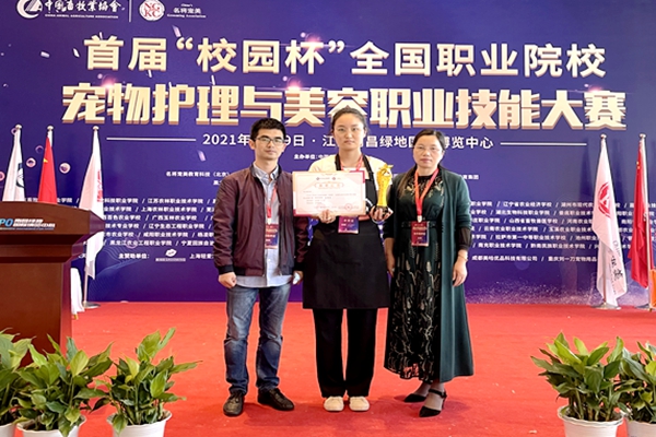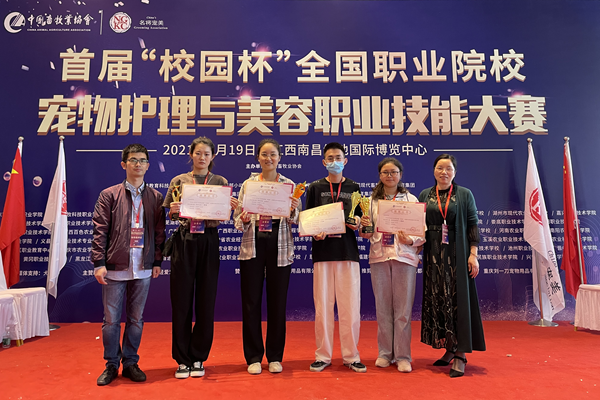 5月19日至20日,首届“校园杯”全国职业院校宠物护理与美容技能大赛在江西南昌绿地国际博览中心举行。Beat365生物与制药工程学院4名同学参赛,徐玉莹同学荣获创意组特等奖,白利荣同学荣获贵宾组一等奖,叶灵和陈贵琼同学获快速美容二等奖。王小芬,石浪涛两位老师获特等奖优秀指导教师奖。