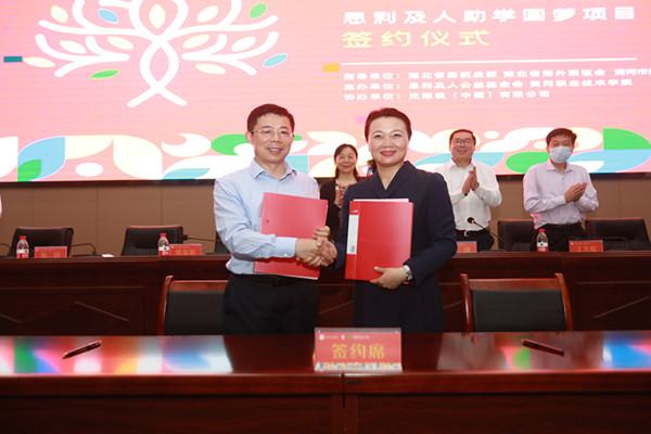 陈蔚和熊发涯共同签订助学圆梦协议