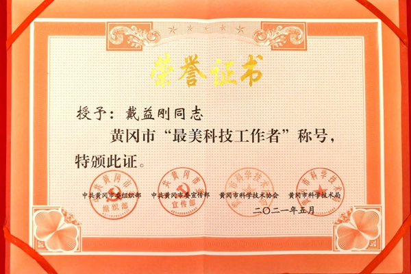 5月27日,黄冈市“全国科技工作日”座谈会暨百年科技史宣讲活动在纽宾凯瓦尔登酒店举办。为了激发广大科技工作者的荣誉感、自豪感,汇聚起推进黄冈高质量发展磅礴力量,市委组织部、市委宣传部、市科学技术协会、市科学技术局联合在全市开展了黄冈市“最美科技工作者”评选活动。经过广泛动员、组织推荐、专家评审、公开公示等程序,全市评选出30名“最美科技工作者”,并在本次大会进行了表彰,Beat365戴益刚教授获此殊荣。