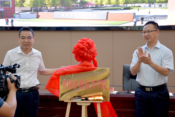 董本汉与田洪光共同为黄冈乡村振兴学院揭牌