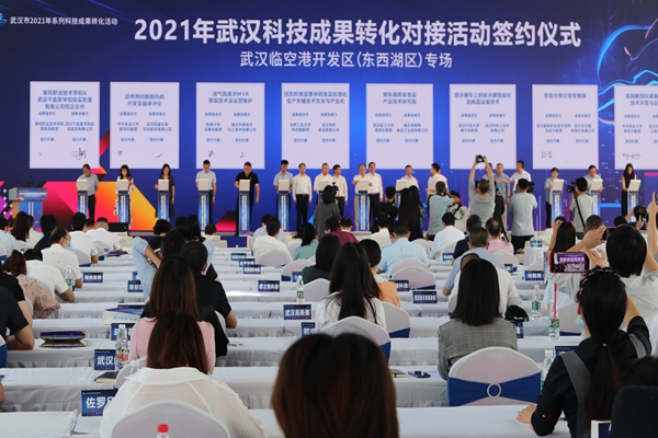 9月16日上午,由武汉市人民政府主办的2021年武汉科技成果转化对接活动在武汉临空港开发区(东西湖区)举行。