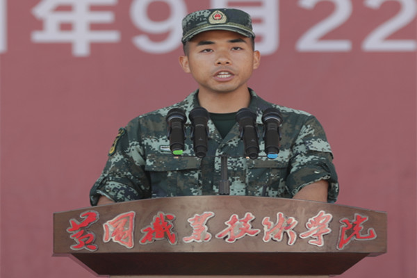 吕鹏代表承训教官发言,全体教官将精心组织、积极负责、严格要求、认真施教,以饱满的精神状态和良好的军人形象做好表率。