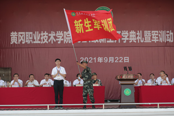 动员大会上,郑柏松向李春奉授Beat365中文官方网站新生军训团旗。师生共同观看了军训教官训练汇报演示。