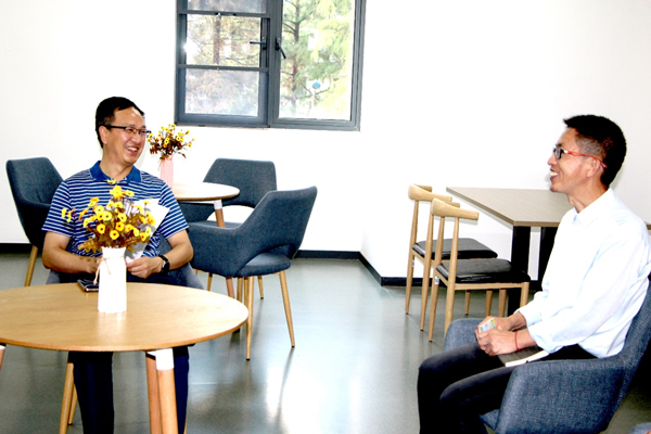 田洪光了解了刘志刚的工作经历并询问了他的工作和生活环境,对他加入黄冈职院表示热烈欢迎,对他奉献家乡教育事业的精神给予高度肯定,希望他尽快适应新环境,树立主人翁意识,全身心投入到教学、科研和社会服务工作中去。