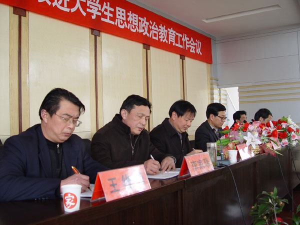 涂普生同志重点传达了中央政治局委员、省委书记俞正声同志,省委党委、宣传部长张昌尔同志在全省加强和改进大学生思想政治教育工作会议精神,全面部署了学院加强和改进大学生思想政治教育工作。他强调:中央及省委领导的讲话为我们抓好这项工作指明了方向。我们要从政治和全局的高度,紧密结合学院实际,坚定不移地贯彻落实好。必须充分认识到“培养什么人,如何培养人”是关系到高校教育事业发展方向的一个根本问题。要破解当前大学生思想政治教育的紧迫课题,着力抓好以理想信念教育为核心,深入进行正确的世界观、人生观、价值观教育;以爱国主义教育为重点,深入进行民族精神教育;以基本道德规范为基础,深入进行公民道德教育;以大学生全面发展为目标,深入进行素质教育。当前,要切实做好贫困家庭学生资助工作、毕业生就业服务指导、后勤管理和服务、大学生心理健康和教育工作四件实事,以扎实有效的工作来体现以人为本,增强思想政治教育的说服力。涂普生强调,要结合我院的实际,重点要安排好几项工作:切实解决好干部、教师队伍中的存在的实际问题;开展好师德教育,树立典型;加大贫困生“造血式”扶贫力度;加强校园文化建设,营造育人环境;加快教学改革步伐,提高人才培养质量。党委副书记覃守云在会上充分肯定了学院组建以来,我院形成的“三到人、四个一”思想政治工作模式,“四率”考核、“两情”管理、“四家”建设学生工作特色。我院加强和改进大学生思想政治教育工作的作法和特色,得到了上级有关部门的充分肯定。