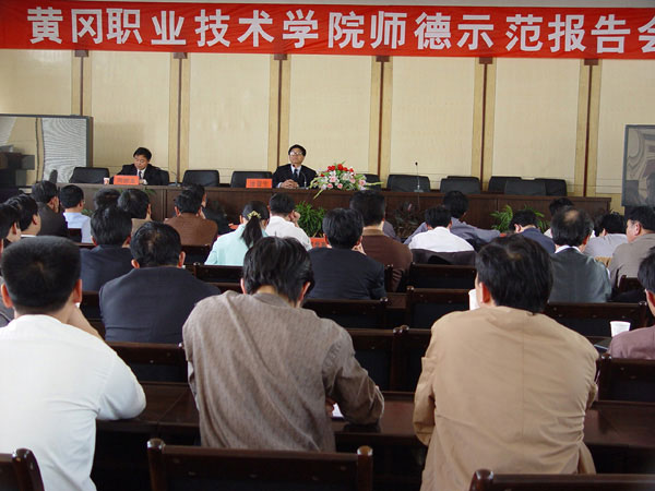 2005年4月8日下午,我院在学术报告厅举行了师德示范报告会。院领导涂普生、周德金、覃守云、李家瑞、李耀水、王维华、汪晓凌及全院高职称教师代表、副科级以上干部参加了会议,大会由院长周德金同志主持。
