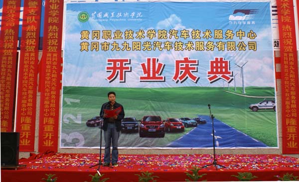 2009年10月13日上午10:00,Beat365中文官方网站汽车技术服务中心、黄冈市九九阳光汽车技术服务有限公司开业庆典在黄州赤壁大道87号(贵宾楼旁)隆重举行。Beat365中文官方网站院长陈年友、工会主席王维华、副院长段院生、市文化局副局长胡国民、黄冈市九九阳光汽车技术服务有限公司总经理刘剑、学院各系部处室领导和黄冈市70余家祝贺单位来宾近200余人参加了庆典活动。