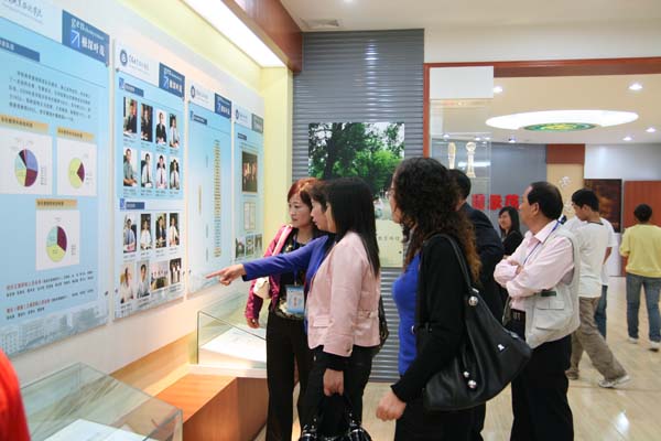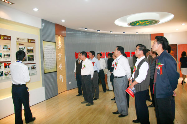 校史馆位于图书馆一楼,占地面积200多平方米,共展出各类实物、图片和档案史料1000余件。仪式结束后,院领导及参加仪式的人员全程参观了校史馆。校史展分为各级领导关怀和支持的“领导关怀”、中专五十年办学历程的“风雨彩虹”、介绍建院十年来办学成果的“根深叶茂”、介绍办学六十年来部分杰出校友的“校友风采”以及学院今后十年发展目标的“未来展望”五个部分,以时为经,以实为纬,充分运用空间造型艺术、平面设计艺术和多媒体技术,生动而形象地再现了我院办学60年暨建院10年来的发展轨迹和办学特色,是历代职院人自强不息、矢志不移、顽强拼搏、积极进取精神的历史缩影。在解说员娓娓道来的解说中,不同历史时期的每一张珍贵照片、每一个展品,仿佛都在生动地向大家讲述着我院历经曲折的发展历程和所取得的一个又一个辉煌成就。