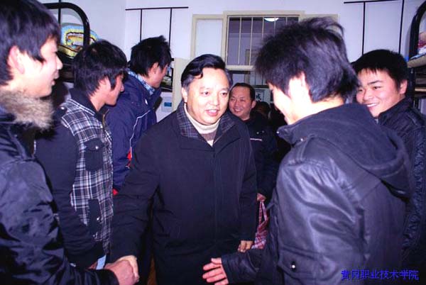 2010年1月6日晚,雪后的校园一片静谧,院党委书记张鹤桥、院长陈年友、院党委副书记覃守云和院长助理熊发涯率各部门负责人亲临校园三区,到各系部宿舍楼看望学生,为贫困生送棉被,献爱心。学生们都被院领导的关爱深深地感动,纷纷表示要奋发向上,学好本领,传承爱心,回报社会。