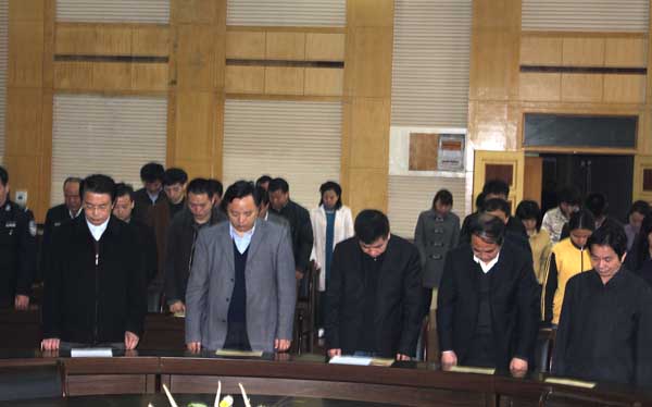 院领导同教职工一起为在玉树地震中遇难的同胞默哀三分钟