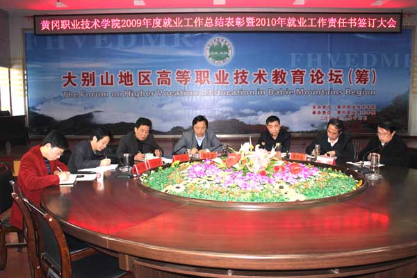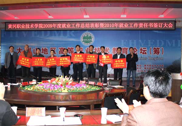 陈年友院长与各系部党总支书记在会上签订就业工作目标责任书。生物系余亮彬书记、土木系胡燕书记代表就业工作先进单位发言,经贸系万建华老师、计科系刘琼老师代表先进个人作经验交流。