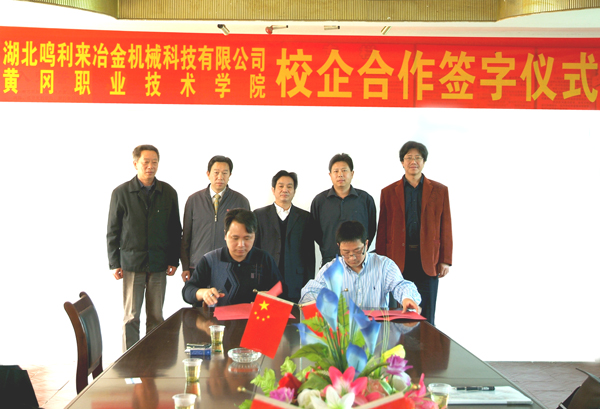 2010年4月28日上午,Beat365中文官方网站机电工程系与湖北鸣利来冶金机械科技有限公司校企合作人才订单教育签字仪式在机电系会议室隆重举行,黄冈市科技局副局长童吉根,湖北鸣利来冶金机械科技有限公司总经理汪学军及公司办公室、项目部负责人,学院副院长汪晓凌、科研处处长王梓林、校企合作处副处长吴怀涛,机电系党总支书记冯灵武、主任倪祥明、副书记夏俊章、08级辅导员及部分学生干部参加了签约仪式。仪式由夏俊章主持。