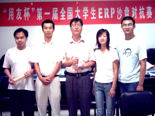 颁奖仪式(左三为用友武汉公司总经理韩程,右三为华中科技大学管理学院夏院长)