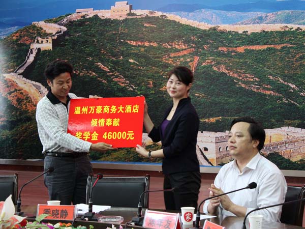21日上午,学院四楼中心会议室掌声雷动,人文科学系46名同学满怀激动与喜悦的心情参加学院与温州万豪商务大酒店有限公司合作开办的涉外酒店订单班开班仪式。院长陈年友教授与酒店总经理助理季晓静女士在订单教育合作协议书上签字。副院长段院生欣然接受了酒店为学生提供的46000元奖学金。副院长熊发涯与酒店方代表朱琳互颁了人员互聘证书。仪式由人文科学系主任胡亚学主持。院就业处处长袁畅、校企合作处副处长吴怀涛、教务处副处长叶建亭等领导和人文科学系部分教师出席了开班仪式。
