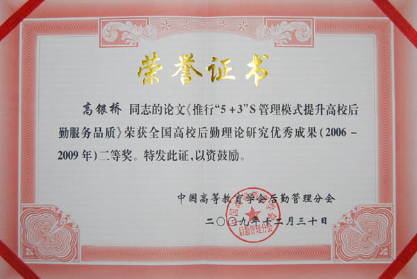 喜报:后勤服务中心荣获两项省级以上表彰 来源:后勤服务中心 作者:杨晨程 发布时间:2016-01-24 16:01:56 浏览次数: 次 【字体:小 大】 近年来,我院扎实开展节约型校园建设工作,为创建资源节约型、环境友好型社会做出了应有的努力,也取得了明显的成效。据悉,2010年6月,在全省高校后勤研究2010年年会上,我院被省教育厅授予“湖北省高等学校节约型校园建设先进单位”称号。同时,在中国高等教育学会及中国高等教育学会后勤管理分会于2009年组织开展的全国高校后勤理论研究优秀成果评选工作中,我院高银桥同志撰写的《推行“5+3”S管理模式提升高校后勤服务品质》一文荣获论文类二等奖。特向全院师生员工报喜。 分享到: 【打印正文】