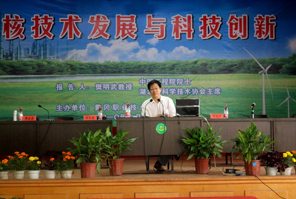 樊院士此次学术报告会的主题是“核技术发展与科技创新”。报告会上,樊明武院士以大量珍贵的图片、详实的数据和生动的事例,讲述了核能是一种很好的替代能源;核技术的发展推动了科技创新,给人类带来与大自然和谐相处的美好生活。他结合核技术的进步与科技创新告诫渴望创新的年轻人“创新,不要期望总赢得掌声,相反要有不被人理解的思想准备,要耐得住寂寞”、“科技创新的最终目的是改善人类物质、精神生活质量,提高人类的生活水平,促进社会文明进步。”同时,他希望大家,以严谨务实的态度,高度的责任心和使命感,参与科技创新,创造物质财富,改善生存环境,提高生活健康质量,推进社会文明进步 。