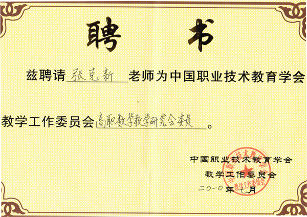 会上,张克新教授介绍了我院数学教学改革的情况,承担了数学教学资源库的部分建设任务,被增选为中国职业技术教育学会教学工作委员会高职数学教学研究会委员。