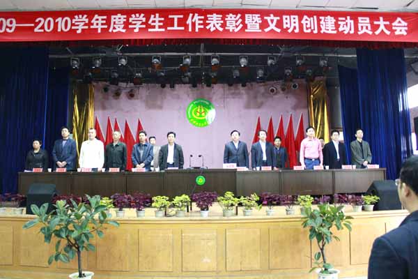 2010年10月14日下午2:00,学院在大学生活动中心组织召开2009-2010学年度学生工作表彰暨文明创建动员大会。大会由副院长李耀水主持。出席大会的院领导有:院长陈年友、工会主席王维华、副院长段院生。各处室负责人,各系部党总支书记、副书记、辅导员及2009、2010级学生代表一千余人参加了大会。